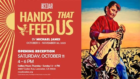 Lancaster, CA - October 6, 2025 - The Lancaster Museum of Art and History (MOAH) and MOAH:CEDAR are pleased to present Hands That Feed Us , a solo exhibition by artist Michael James. The exhibition will be on view from October 11 through November 30, 2025, at MOAH:CEDAR. The opening reception will take place on Saturday, October 11, from 4 to 6 p.m.