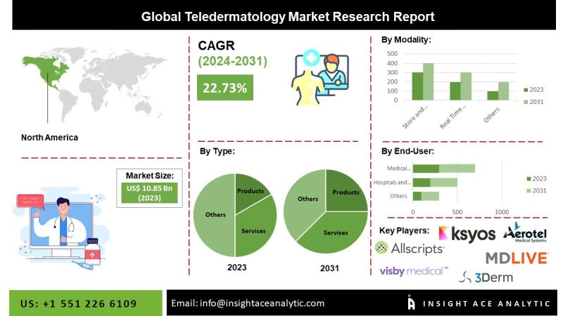 "Teledermatology Market" in terms of revenue was estimated to be worth $10.85 billion in 2023 and is poised to reach $55.17 billion by 2031, growing at a CAGR of 22.73% from 2024 to 2031 according to a new report by InsightAce Analytic.