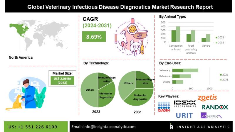 "Veterinary Infectious Disease Diagnostics Market" in terms of revenue was estimated to be worth $2.06 billion in 2023 and is poised to reach $3.95 billion by 2031, growing at a CAGR of 8.69% from 2024 to 2031 according to a new report by InsightAce Analytic.