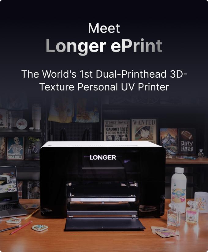 Shenzhen, China - LONGER, a global innovator in 3D printing and UV digital manufacturing technologies, announced today that its newly launched ePrint UV-texture printer series achieved a record-breaking start on Kickstarter. The project reached its initial $50,000 funding goal in just 60 seconds and exceeded $1 million within the first 45 minutes of going live.