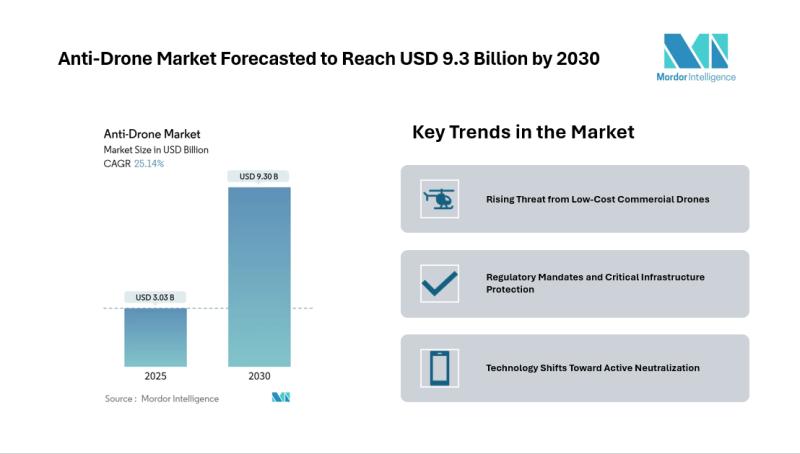 Anti-Drone Market Forecasted to Reach USD 9.3 Billion by 2030 - Mordor Intellige …
