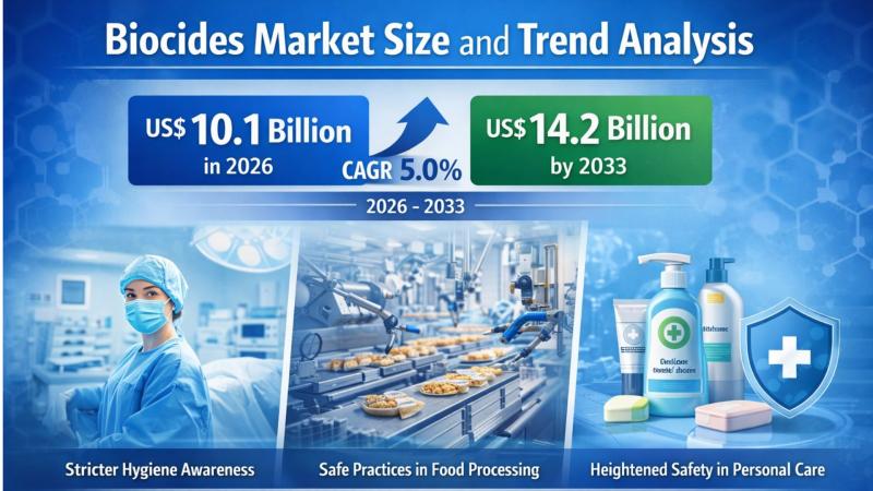 The global biocides market is poised for steady expansion, driven by increasing demand across diverse industries such as water treatment, healthcare, food processing, and industrial manufacturing. According to the latest study by Persistence Market Research, the market is expected to grow from US$ 10.1 billion in 2026 to US$ 14.2 billion by 2033, registering a CAGR of 5.0% during the forecast period from 2026 to 2033. Biocides, which are chemical…
