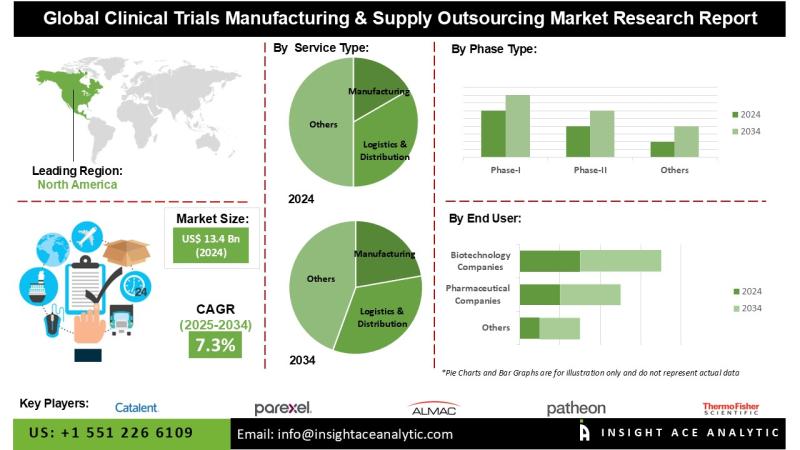 InsightAce Analytic Pvt. Ltd. announces the release of a market assessment report on the "Global Clinical Trials Manufacturing and Supply Outsourcing Market- (By Service Type (Manufacturing, Logistics & Distribution, Storage & Retention, Others), By Phase Type (Phase-I, Phase-II, Phase-III, Phase-IV), By End-User (Pharmaceutical Companies, Biotechnology Companies, Others)), Trends, Industry Competition Analysis, Revenue and Forecast To 2034."
