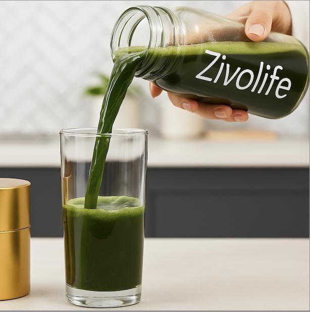 Zivolife's patented microalgae superfood delivers 85+ nutrients in one scoop-pure, powerful, and ready to pour.