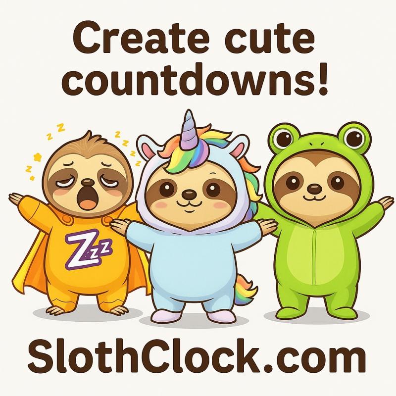 Count Down with Style (and Sloths!) SlothClock is not just another timer - it's a celebration tool. Whether you're tracking the days to your…