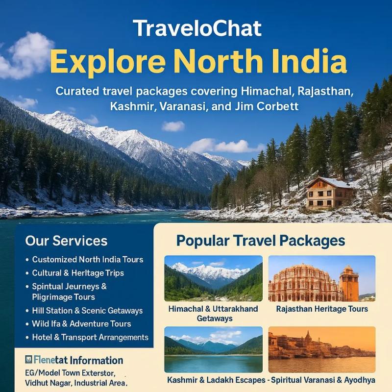TraveloChat offers curated North India travel packages covering Himachal, Rajasthan, Kashmir, Varanasi, and Jim Corbett. Explore cultural tours, hill station getaways, wildlife safaris, and spiritual journeys with seamless services from Hisar's trusted travel company.
