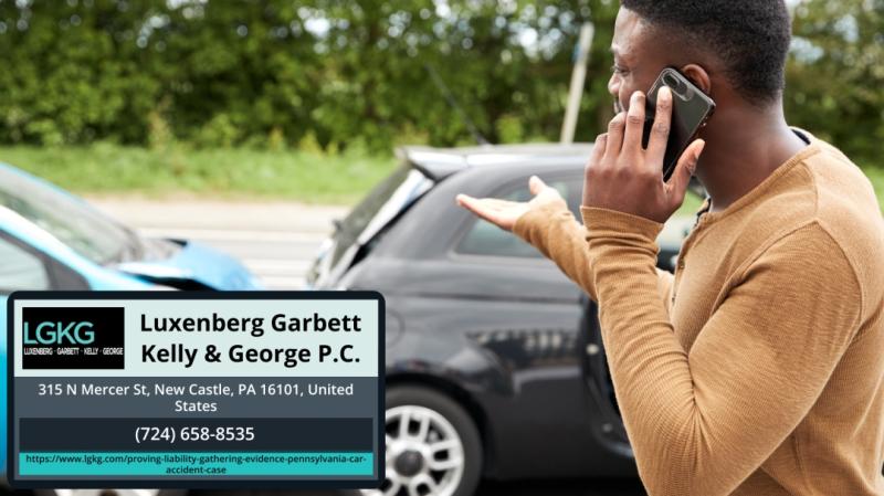 New Castle, Pennsylvania - Western Pennsylvania car accident attorneys from Luxenberg Garbett Kelly & George P.C. (https://www.lgkg.com/proving-liability-gathering-evidence-pennsylvania-car-accident-case) outline a comprehensive, evidence-driven approach to establishing fault in Pennsylvania motor vehicle collisions. Drawing on decades of courtroom advocacy across Western Pennsylvania, Kelly highlights how timely documentation, digital data, and coordinated investigation can position injured parties for fair case outcomes while allowing medical recovery to remain the priority.In explaining the approach, the Western Pennsylvania car accident attorneys emphasize the foundation of early, methodical scene documentation. Photographs of vehicle positions, visible injuries, skid marks, traffic control devices, and road conditions provide contemporaneous snapshots that often become pivotal during negotiations and trial. The framework integrates Pennsylvania's modified comparative negligence rule, recognizing that reliable visuals and statements help apportion responsibility with clarity. Eyewitness accounts, collected promptly with contact details and preserved while memories are fresh, add corroboration that frequently aligns with physical evidence gathered at the scene.