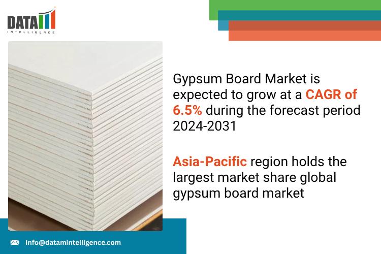 Gypsum Board Market is expected to grow at a CAGR of 6.5% during the forecast period 2024-2031