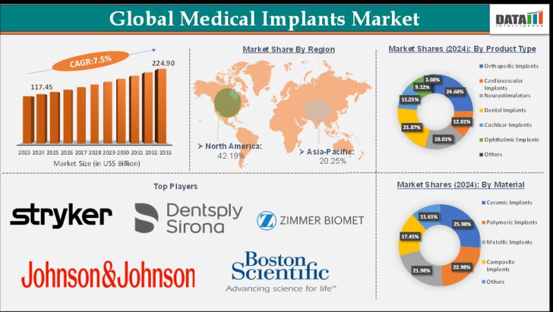"Medical Implants Market Size reached US$ 117.45 Billion in 2024 and is expected to reach US$ 224.90 Billion by 2033, growing at a CAGR of 7.5% during the forecast period 2025-2033." As per DataM intelligence research report