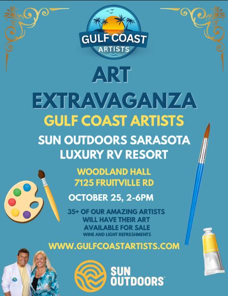MARK YOUR CALENDAR: Art Extravaganza Sarasota 2025Saturday, October 25, 2025 | 2:00-6:00 PM | Sun Outdoors Sarasota Luxury RV Resort - Woodland Hall