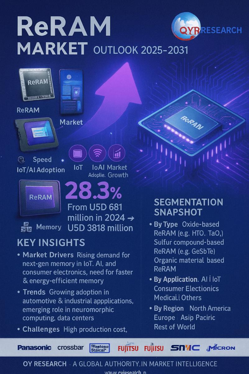 Los Angeles, United States - According to the latest market research study published by QY Research, the Global ReRAM Market is poised for substantial growth over the forecast period 2025-2031. Valued at USD 681 million in 2024, the market is projected to reach USD 3818 million by 2031, expanding at a CAGR of 28.3%.