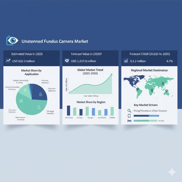 The global unattended fundus camera market is on a steady growth trajectory, with significant implications for healthcare providers, medical technology innovators, and policymakers alike. As the market is projected to grow from USD 532.2 million in 2025 to USD 1,017.9 million by 2035, this surge underscores the rising importance of automated retinal imaging systems in ophthalmology. With a forecasted CAGR of 6.7%, the market expansion is fueled by increasing diabetes…