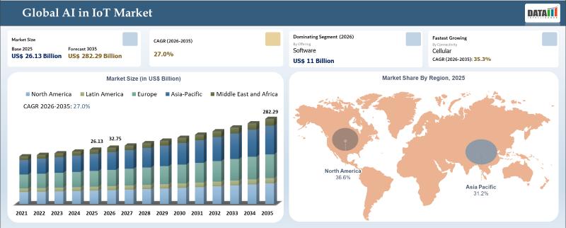 The Global AI in IoT Market reached US$ 4.08 billion in 2025 and is expected to reach US$ 6.45 billion by 2035, growing at a CAGR of 4.8% during the forecast period 2026-2035.