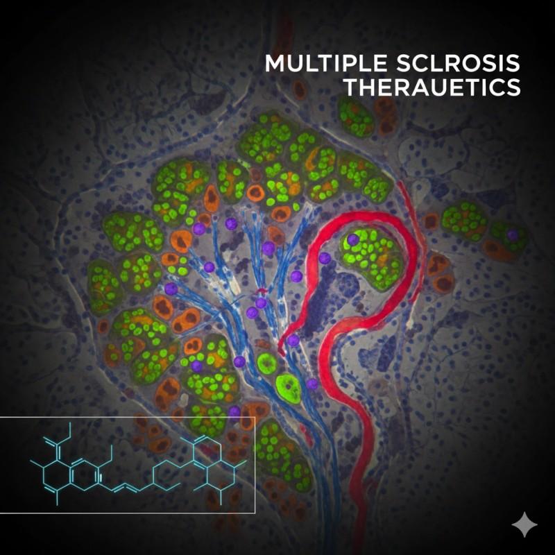 Multiple sclerosis therapeutics are treatments aimed at managing and slowing the progression of multiple sclerosis (MS), a chronic autoimmune disease affecting the central nervous system. These include disease-modifying therapies, immunosuppressants, and symptom-specific treatments, designed to reduce relapses, control inflammation, and improve patient quality of life.
