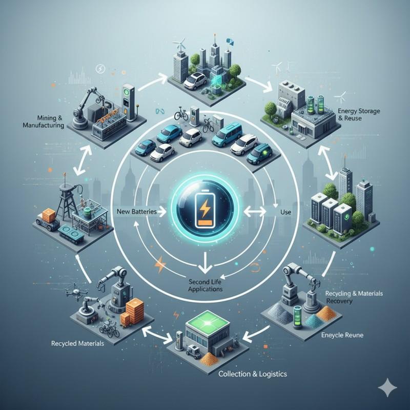 Circular battery economy is a sustainable approach to battery lifecycle management that emphasizes reuse, recycling, and repurposing of batteries to minimize waste and environmental impact. It supports resource efficiency, cost reduction, and the transition to green energy in electric vehicles, consumer electronics, and renewable energy storage systems.