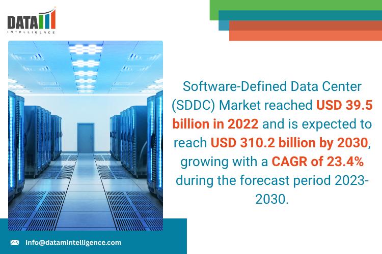 Software-Defined Data Center (SDDC) Market reached USD 39.5 billion in 2022 and is expected to reach USD 310.2 billion by 2030, growing with a CAGR of 23.4% during the forecast period 2023-2030.DataM Intelligence unveils its latest report on the "Software-Defined Data Center Market Size 2025," offering an in-depth analysis of market trends, growth drivers, competitive landscape, and regional dynamics. The study covers market size in value and volume, CAGR forecasts, and emerging opportunities that can guide businesses in seizing growth potential and crafting winning strategies. Packed with data-driven insights on current developments and future trends, this report is essential for companies aiming to stay ahead in the competitive Market.