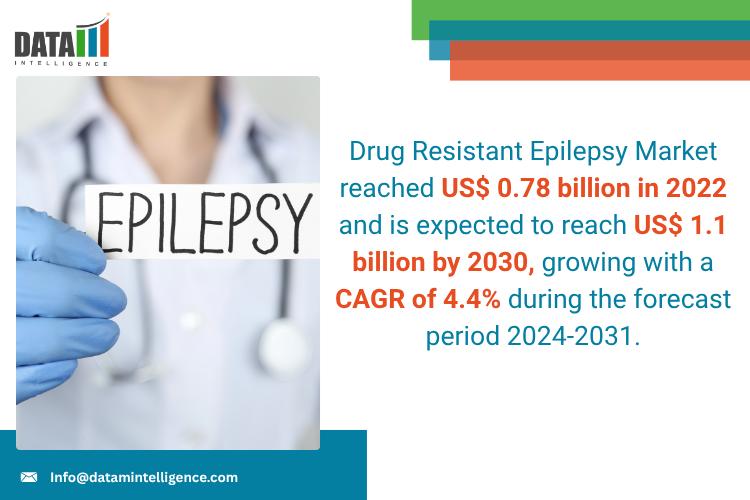 Drug Resistant Epilepsy Market reached US$ 0.78 billion in 2022 and is expected to reach US$ 1.1 billion by 2030, growing with a CAGR of 4.4% during the forecast period 2024-2031.DataM Intelligence unveils its latest report on the "Drug-Resistant Epilepsy Market Size 2025," offering an in-depth analysis of market trends, growth drivers, competitive landscape, and regional dynamics. The study covers market size in value and volume, CAGR forecasts, and emerging opportunities that can guide businesses in seizing growth potential and crafting winning strategies. Packed with data-driven insights on current developments and future trends, this report is essential for companies aiming to stay ahead in the competitive Market.