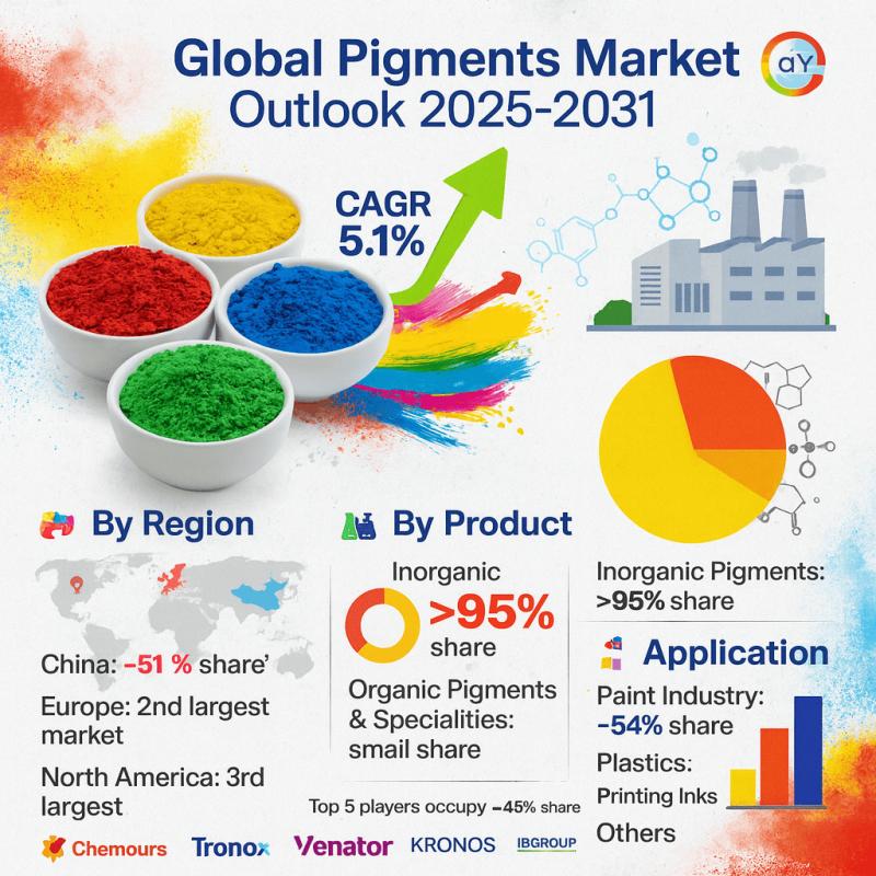 Los Angeles, United States - According to the latest market research study published by QY Research, the Global Pigments Market is poised for substantial growth over the forecast period 2025-2031. Valued at USD 27.93 billion in 2024, the market is projected to reach USD 39.36 billion by 2031, expanding at a CAGR of 5.1%.This anticipated expansion is attributed to rising adoption across multiple industries, technological innovation, evolving consumer preferences, and strong demand in emerging economies. The study provides a comprehensive analysis of key drivers, growth trends, competitive dynamics, opportunities, and challenges shaping the future of the market.