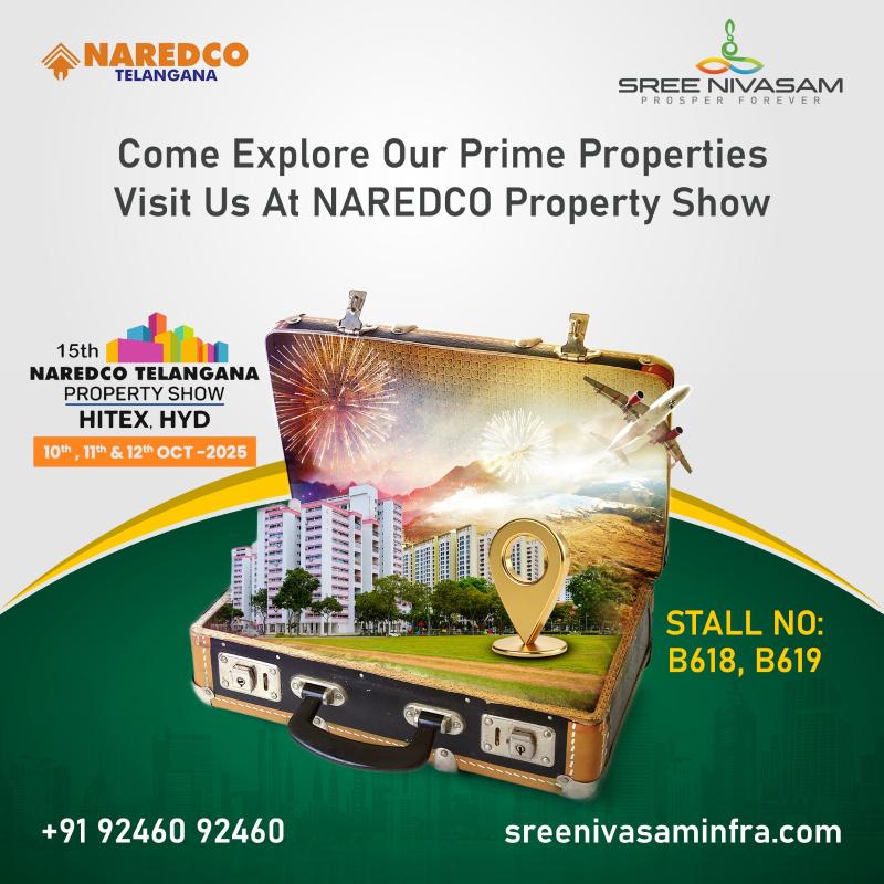 Sree Nivasam Infra is participating in the NAREDCO Property Show at the HITEX Exhibition Center, Hyderabad.