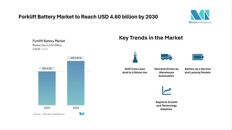 Forklift Battery Market to Reach USD 4.60 billion by 2030 - Mordor Intelligence