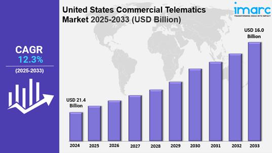IMARC Group has recently released a new research study titled "United States Commercial Telematics Market Report by Type (Solution, Services), System Type (Embedded, Tethered, Smartphone Integrated), Provider Type (OEM, Aftermarket), End Use Industry (Transportation and Logistics, Media and Entertainment, Government and Utilities, Travel and Tourism, Construction, Healthcare, and Others), and Region 2025-2033", offers a detailed analysis of the market drivers, segmentation, growth opportunities, trends and competitive landscape to understand the current and future market scenarios.United States Commercial Telematics Market Overview