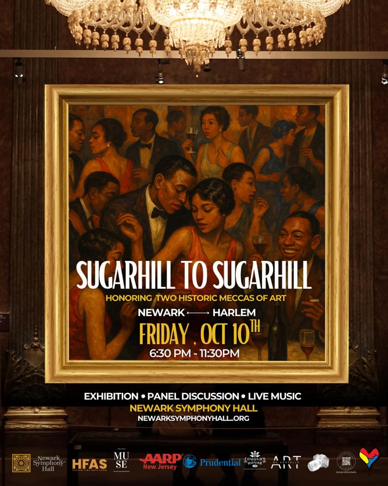 Newark, NJ - October 7- This Friday, October 10th, Newark Symphony Hall opens its doors for "SugarHill to SugarHill", a cultural celebration honoring the brilliance, style, and legacy of artistry, marking the official kickoff to Newark Symphony Hall's 100th Anniversary in partnership with Harlem Fine Arts Show, The B.A.G. Tour & Newark Arts.This one-night-only event is not just a historical tapestry, it is a movement. A living bridge connecting Harlem's historic Renaissance to Newark's contemporary creative pulse and its resilience. Guests will experience an immersive evening of live music, captivating student and professional performances, and a curated gallery exhibition and moderated panel talk with historians and artists. This discussion will spotlight ethnography and the innovators and visionaries shaping culture across generations. Creators will step into immersive environments where every corner tells a story worth capturing as this event synergizes as a part of Newark Arts Festival's lineup.
