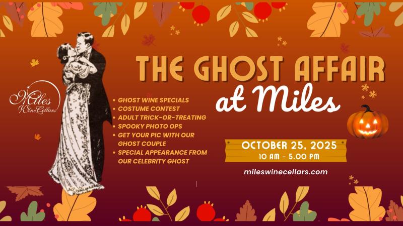 On Saturday, October 25, from 10am to 5pm, Miles Wine Cellars transforms into a ghostly gathering spot with The Ghost Affair. This costume-friendly celebration features Ghost Wine Specials, a costume contest where guests can strut their stuff as the graveyard's next top model, adult trick-or-treating, and spooky photo opportunities. Guests will also have the chance to meet the winery's Ghost Couple. No tickets are required to attend, though guests must be 21 or older.