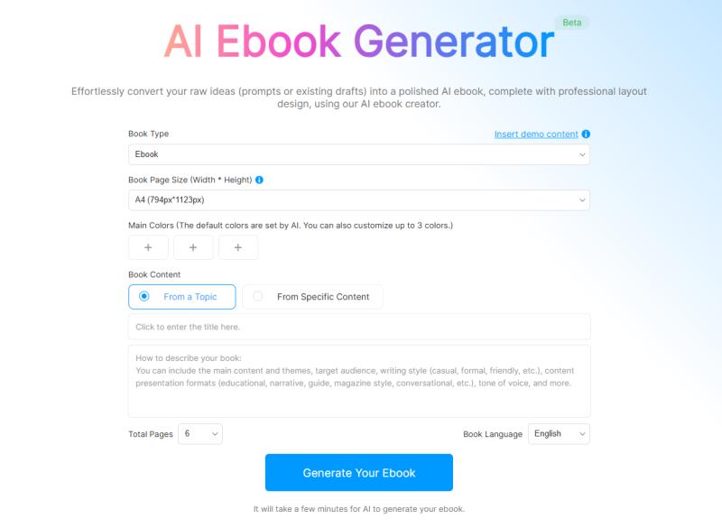 The AI ebook generator offers two main ways to create an ebook. For users with ideas but no organized content,…