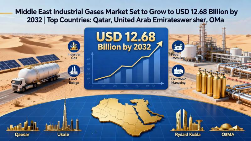 Middle East Industrial Gases Market Set to Grow to USD 12.68 Billion by 2032 | Top Countries: Qatar, United Arab Emirates (UAE), Saudi Arabia, Kuwait, Oman