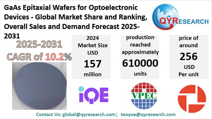 The global market for GaAs Epitaxial Wafers for Optoelectronic Devices was estimated to be worth US$ 157 million in 2024 and is forecast to a readjusted size of US$ 308 million by 2031 with a CAGR of 10.2% during the forecast period 2025-2031.