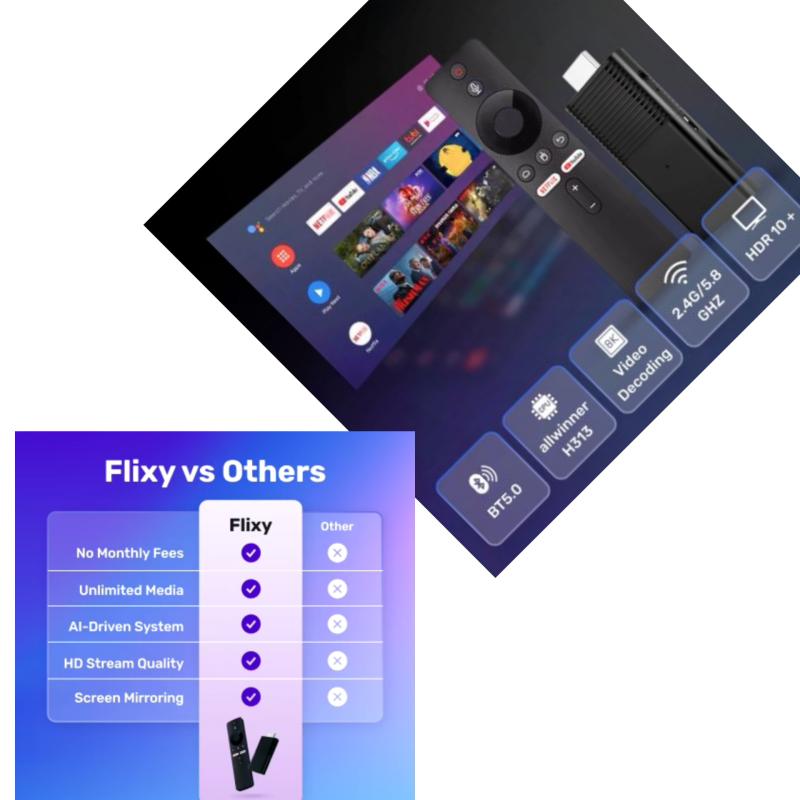 With this combination, the Flixy Smart TV USB Stick achieves what most competitors can't: turning any ordinary TV into a limitless smart entertainment station, instantly, intelligently, and effortlessly.