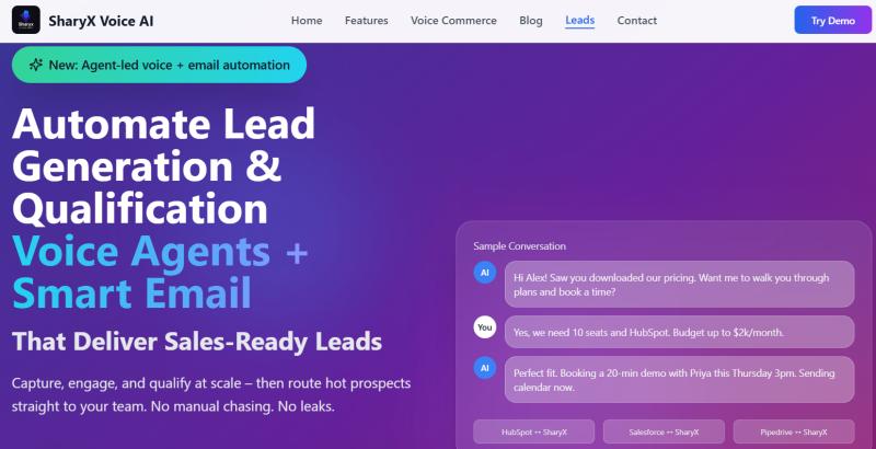 Sharyx is a next-generation AI voice agent platform that helps businesses scale their customer interactions with natural, human-like conversations in 16+ languages. Whether you're booking appointments, qualifying leads, handling service or technical-support calls, or gathering customer feedback, Sharyx seamlessly integrates into your existing telephony stack (SIP/PSTN/VoIP) and CRM workflows-so you can focus on closing more deals and delivering exceptional experiences.D4-3-2, Solaris Dutamas, No.1, Jalan Dutamas 1