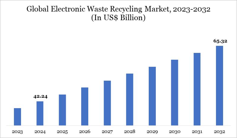As per DataM intelligence research report "Global Electronic Waste Recycling Market reached US$ 42.24 billion in 2024 and is expected to reach US$ 65.32 billion by 2032, growing with a CAGR of 5.6% during the forecast period 2025-2032."