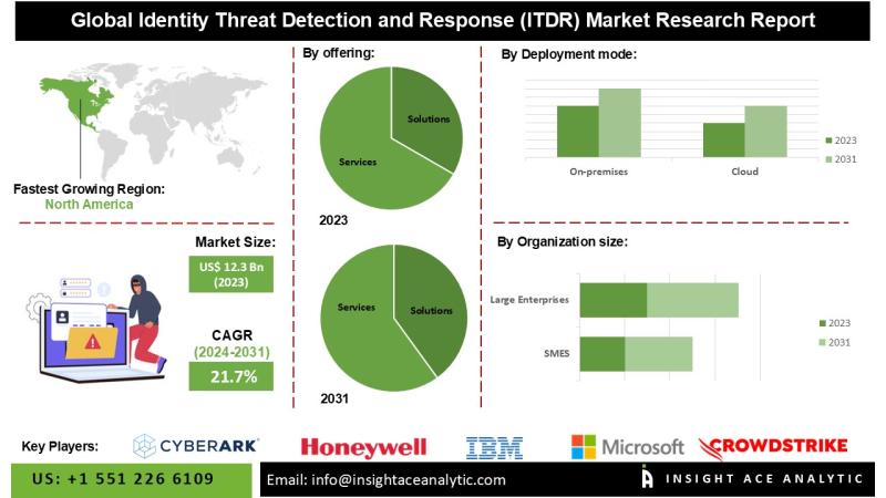 InsightAce Analytic Pvt. Ltd. announces the release of a market assessment report on the "Identity Threat Detection and Response (ITDR) Market"-, By Offering (Solutions and Services), Deployment Mode (Cloud and On-premises), By Organization Size (Large Enterprises, SMES),By Vertical (BFSI, Retail & Ecommerce, Government & Defense, IT & ITes, Telecommunications, Energy & Utilities, Education , Healthcare & Life Sciences, Other verticals), and Global Forecasts, 2024-2031 And Segment Revenue and Forecast To…