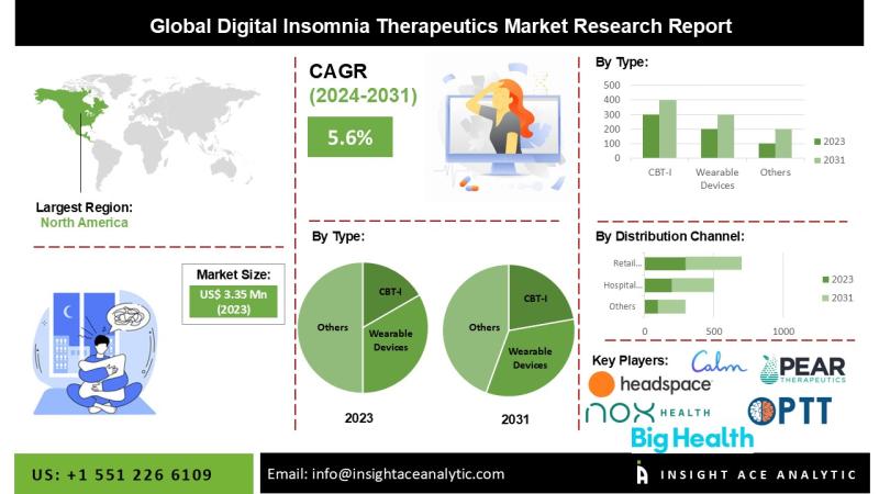 InsightAce Analytic Pvt. Ltd. announces the release of a market assessment report on the "Global Digital Insomnia Therapeutics Market Size, Share & Trends Analysis Report By Type (Sleep Tracking Apps. Relaxation and Meditation Apps, CBT-I, Wearable Devices), Distribution Channel (Mobile App Stores, Healthcare Providers and Clinics, and Other Distribution Channels) , Region, Market Outlook And Industry Analysis 2031"