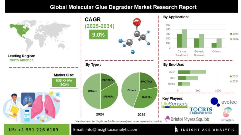 InsightAce Analytic Pvt. Ltd. announces the release of a market assessment report on the "Global Molecular Glue Degrader Market Size, Share & Trends Analysis Report By Type (PROteolysis Targeting Chimeras (PROTACs), Specific and Non-genetic IAP-dependent Protein ERasers (SNIPERs), Target ORiented ProtEin Degrader Optimizer (TORPEDO), Lysosomal Targeting Chimeras (LYTACs)), Application (Cancer Treatment, Infectious Diseases, Genetic Diseases) And End Users (Pharmaceutical And Healthcare Companies, Contract Research Organizations (CROs), and Contract Manufacturing Organizations…