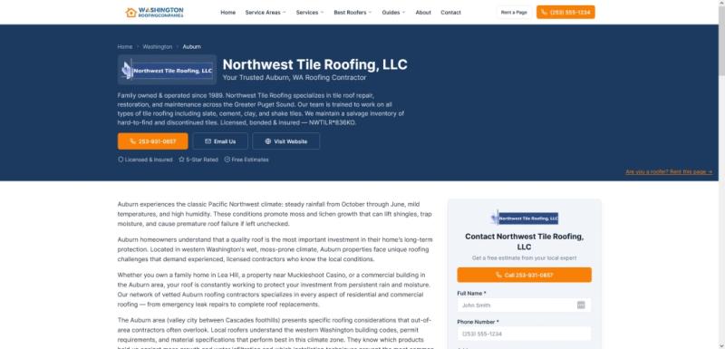 Newly launched RoofingCompaniesWashington.com helps connect Washington homeowners with local roofing services while giving contractors the opportunity to rent dedicated city pages across Washington State.