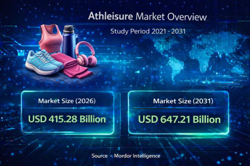 According to a research report by Mordor Intelligence, the global athleisure market size is projected to grow from USD 415.28 billion in 2026 to USD 647.21 billion by 2031, registering a strong CAGR of 9.28% during the forecast period. The accelerating athleisure market growth reflects rising demand for versatile clothing that blends athletic performance, comfort, and everyday fashion.