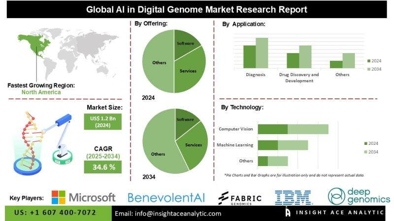 InsightAce Analytic Pvt. Ltd. announces the release of a market assessment report on the "Global AI in Digital Genome Market Size, Share & Trends Analysis Report By Type of Offering (Software and Services), By Type of Technology (Machine Learning and Computer Vision), By Type of Functionality (Genome Sequencing, and Gene Editing), By Application Area (Diagnosis, Drug Discovery and Development, Precision Medicine, Agriculture & Animal Research, and Other Applications), By End…