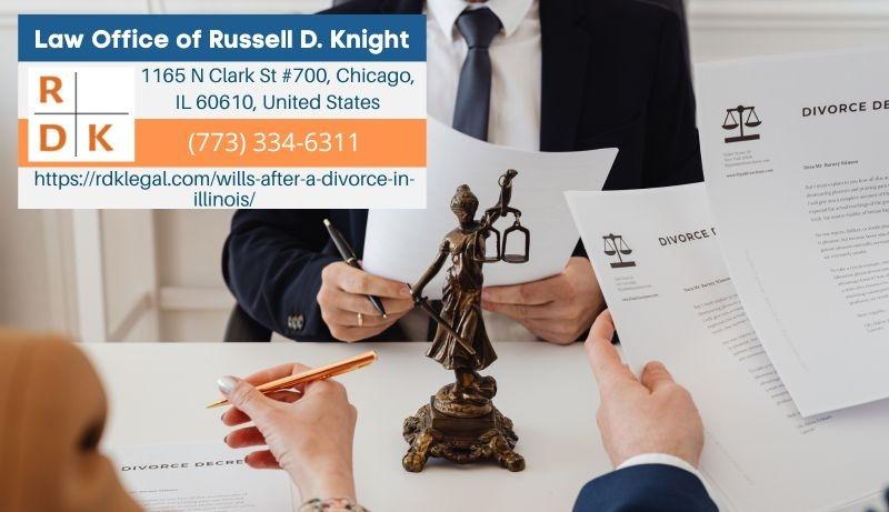 CHICAGO, IL - Divorce has significant legal consequences for wills and estate plans in Illinois, but only after the divorce is finalized. Chicago divorce attorney Russell D. Knight of the Law Office of Russell D. Knight (https://rdklegal.com/wills-after-a-divorce-in-illinois/) is providing guidance on how divorce revokes provisions benefiting former spouses, when prenuptial or postnuptial agreements can override these rules, and how divorce decrees affect property distribution upon death.