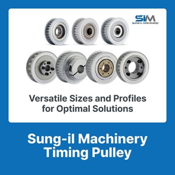 SUNG-IL MACHINERY CO., LTD manufactures high-precision timing pulleys designed for accurate, reliable, and efficient power transmission. These pulleys are engineered to minimize backlash, ensuring high positioning accuracy and smooth operation. Their unique tooth profile reduces the possibility of slippage, making them ideal for high-torque applications. Additionally, the pulleys are carefully balanced for high-speed rotation, providing stable performance with minimal vibration and noise even at elevated RPMs.