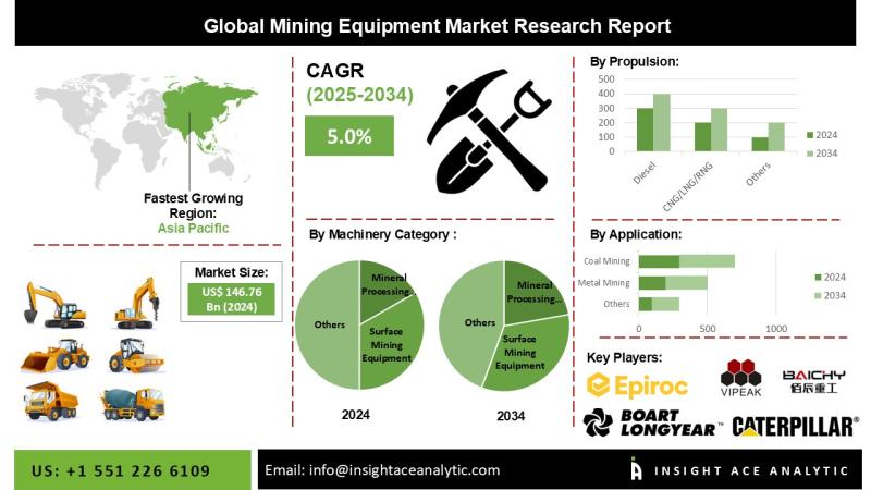 InsightAce Analytic Pvt. Ltd. announces the release of a market assessment report on the "Global Mining Equipment Market Size, Share & Trends Analysis Report By Equipment Type (Underground Mining Equipment, Surface Mining Equipment, Crushing, Pulverizing & Screening Equipment, Drills & Breakers), By Application (Metal Mining, Non-Metal Mining, Coal Mining)- Market Outlook And Industry Analysis 2034"
