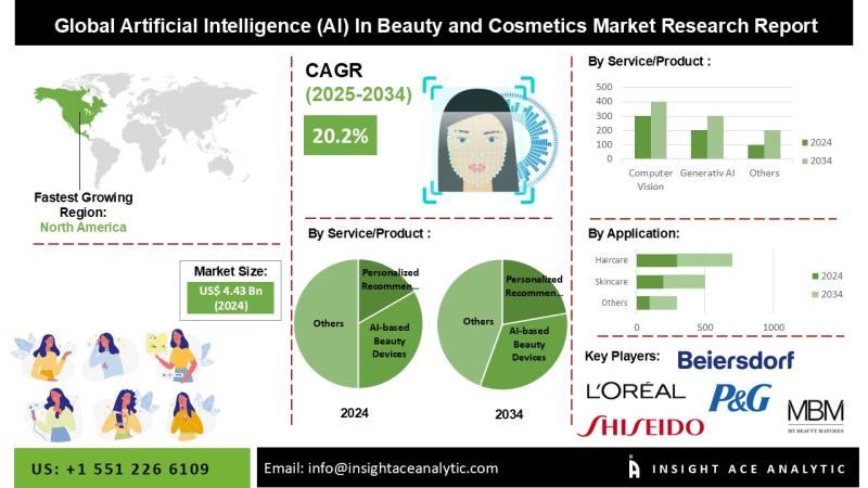 InsightAce Analytic Pvt. Ltd. announces the release of a market assessment report on the "Global Artificial Intelligence (AI) In Beauty and Cosmetics Market- by Service/Product (Personalized Recommendation Tools, Performance Marketing Measurement Platforms, Demand Forecasting & Supply Chain Tools, Real-Time Customer Service Platforms, and AI-based Beauty Devices), Application (Skincare, Haircare, Make-Up, Fragrances, and Others), Trends, Industry Competition Analysis, Revenue and Forecast To 2034."