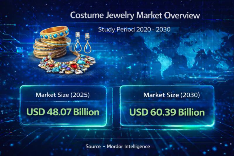 The global costume jewelry market size is projected to grow from USD 48.07 billion in 2025 to USD 60.39 billion by 2030, registering a CAGR of 4.67% during the forecast period. The latest costume jewelry market forecast reflects increasing consumer demand for fashion-forward yet affordable accessories, rising discretionary income in Asia-Pacific, and expanding social-commerce ecosystems.