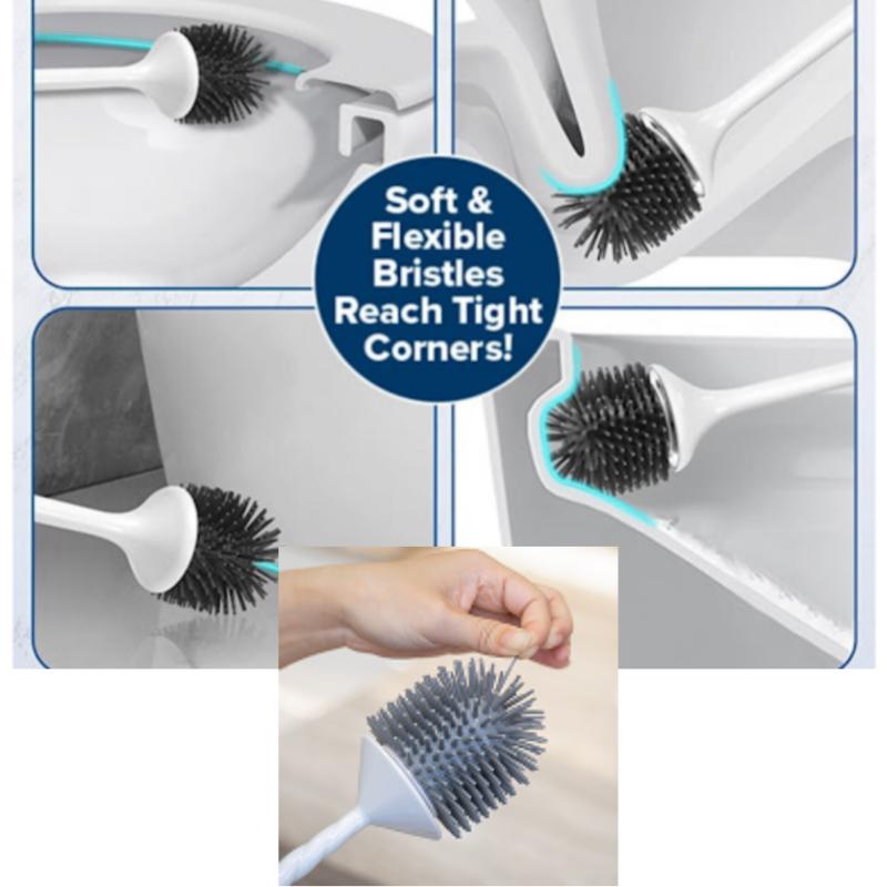 ✅ Flexible Silicone Brush Head: At the heart of the scrubber lies a flexible silicone head equipped with over two hundred and forty anti-stick bristles. These bristles bend easily to follow the natural curves of the toilet bowl, cleaning both flat surfaces and hidden corners under the rim. The silicone structure prevents residue from clinging to the brush, ensuring that it stays clean after every rinse and ready for the next use.