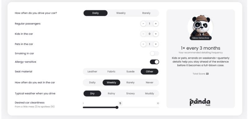 As the first feature of its kind in the market, Panda Hub's Detailing Frequency Calculator reflects the company's mission to make smarter car care accessible to everyone. It's part of a broader effort to combine data, design, and ease-of-use into tools that actually help people make better decisions for their cars.
