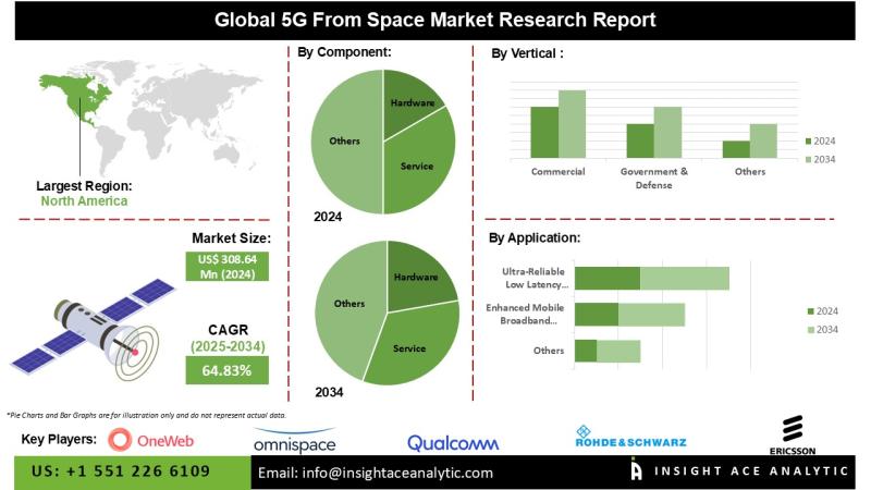 InsightAce Analytic Pvt. Ltd. announces the release of a market assessment report on the "Global 5G From Space Market- (By Component (Hardware (Satellite, User Terminal), Service) By Vertical (Commercial and Government & Defense (Telecommunication, Media & Entertainment, Business & Enterprises, Transportation & Logistics, Scientific Research & Development, Aviation, Marine, Retail & Consumer, Others (energy & power, healthcare, mining & construction, agriculture & forestry)), Government & Defense (Homeland Security& Emergency Management,…