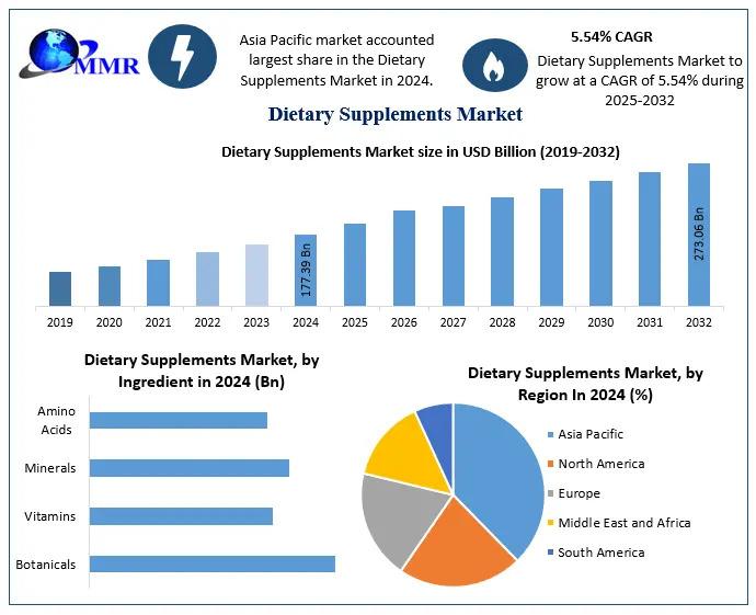 According to recent market analysis, the global dietary supplements market was valued at USD 177.39 billion in 2024 and is projected to grow to USD 273.06 billion by 2032, at a compound annual growth rate (CAGR) of 5.54%. The market growth is primarily fueled by rising consumer focus on wellness, an expanding aging population, and broader adoption of nutritional supplements worldwide.► Get a sample of the report:https://www.maximizemarketresearch.com/request-sample/26277/