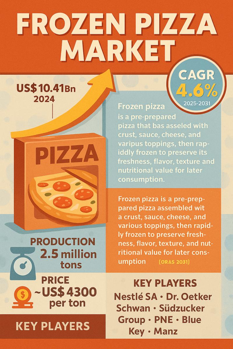 In 2024, global frozen pizza production reached approximately 2.5 million tons, with an average global market price of around US$ 4300 per ton.