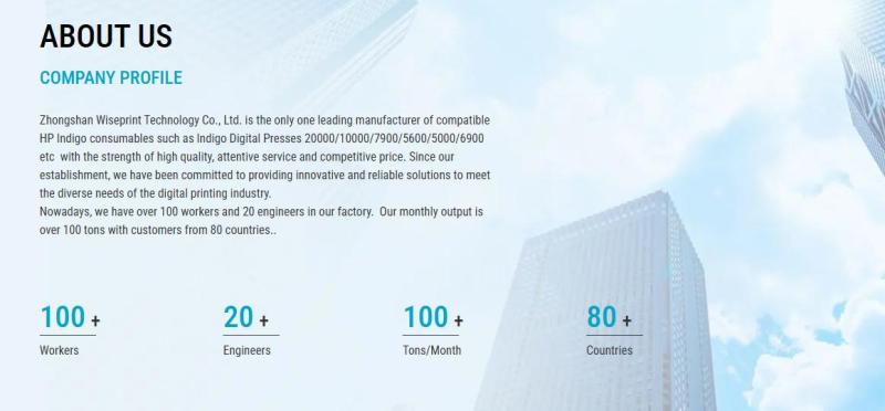 Zhongshan Wiseprint Technology Co,Ltd is the only one leading manufacturer of compatible HP Indigo consumables such as Indigo Digital Presses 20000/10000/7900/5600/5000/6900 etc with the strength of high quality, attentive service and competitive price.
